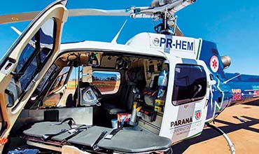 Em uma iniciativa pioneira no Brasil, a unidade aérea do Serviço de Atendimento Móvel de Urgência (Samu) de Maringá realiza transfusão de sangue em vítimas no local da ocorrência – o serviço está disponível desde meados de outubro. Nos últimos seis meses mais de 50% das vítimas atendidas sofreram acidentes graves e poderiam ser enquadradas no protocolo de transfusão de sangue no local da ocorrência. “Antes, era necessário levar o paciente até o hospital, o que poderia durar até 60 minutos. Agora conseguimos atender até dentro das ferragens de um carro, se for o caso”, conta o coordenador do Samu Norte Novo, Maurício Caetano. Segundo o coordenador médico das operações aéreas, Maurício Lemos, os estudos mostram que a transfusão rápida de sangue nos casos de hemorragia representa menos tempo de internação na Unidade de Terapia Intensiva (UTI), maior sobrevida dos pacientes e menor possibilidade de sequelas. Em Maringá é adotado o padrão europeu, com transfusão de concentrado de hemácias de sangue tipo O negativo.